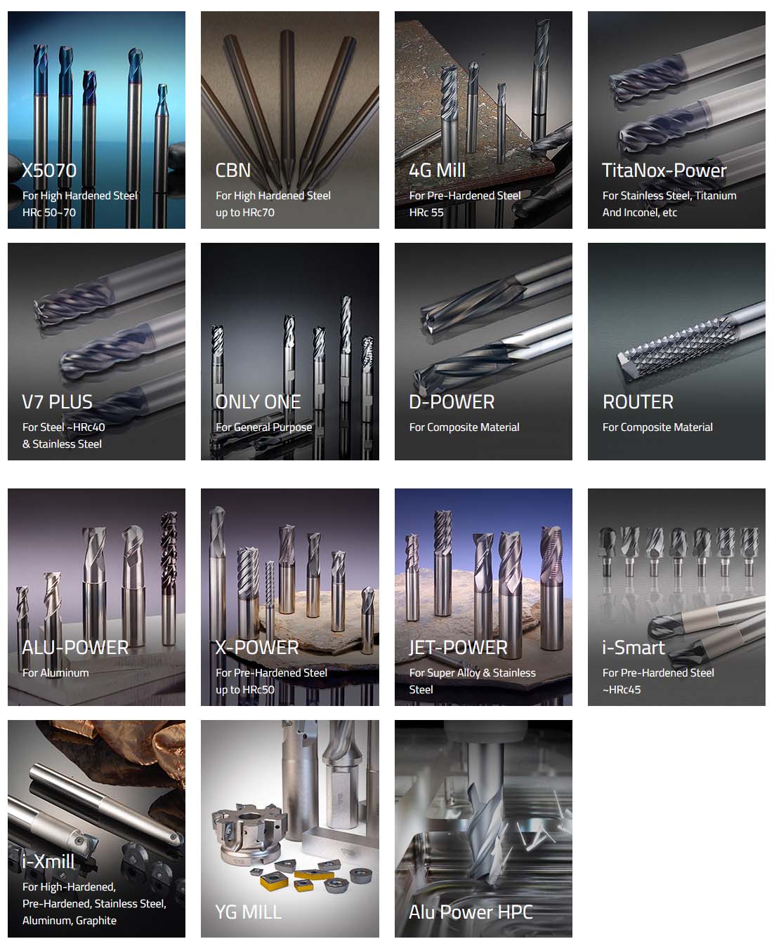 YG-1 Milling tools are recognized to be one of the most cost efficient cutting tools in the world, satisfying many users by providing a mass increase in productivity.